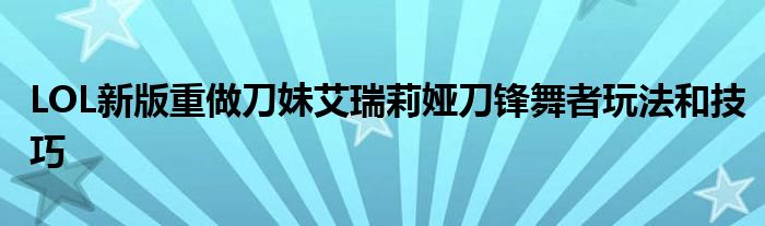 LOL新版重做刀妹艾瑞莉娅刀锋舞者玩法和技巧